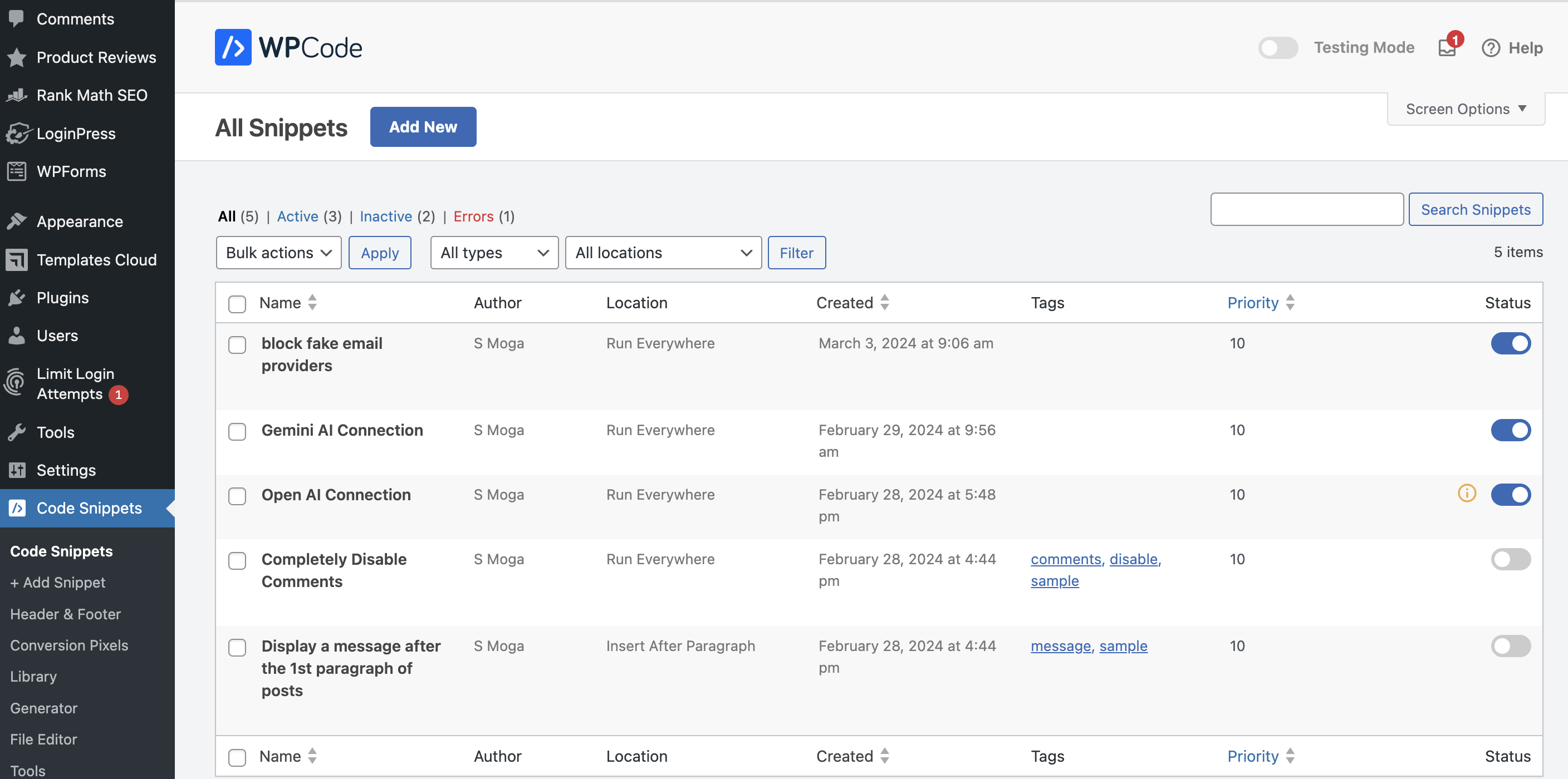 So I create a script named Block Fake Email Providers under WpCode snippets. Like this